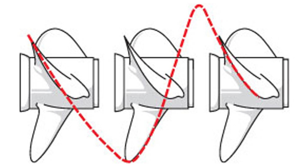 It is very important to choose the pitch based on how you are using the boat. A heavy boat needs the engine to develop more thrust and therefore requires a propeller with a smaller pitch. A smaller pitch increases the acceleration power and helps the engine to reach a maximum RPM at lower speeds; unfortunately, this means departing from the maximum speed.