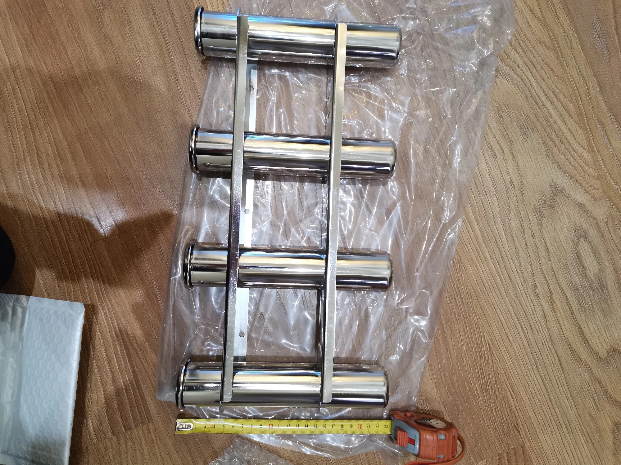This 4-tube fishing rod holder rack is made from 316 stainless steel for superior durability and corrosion resistance in marine environments. Measuring 15" (380 mm) in length, 9" (230 mm) in height, and 3" (76 mm) in depth, it features tubes with a 2" (51 mm) inner diameter to securely hold fishing rods. Its sleek design combines strength with elegance, providing an efficient storage solution that is easy to install and maintain.