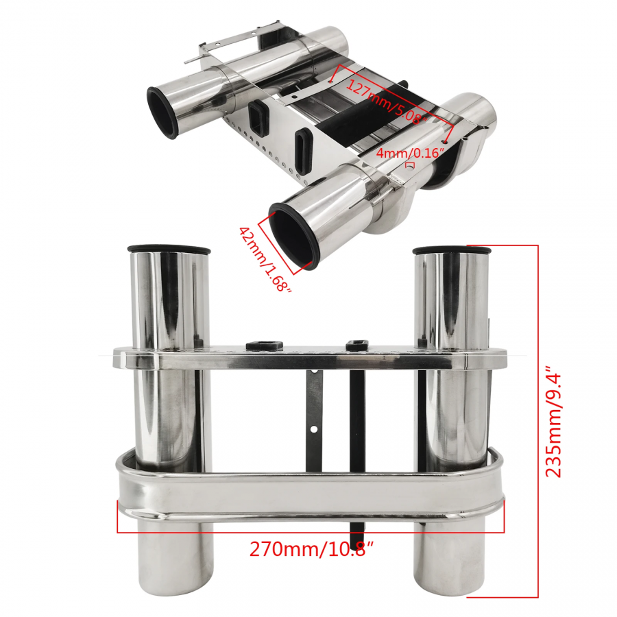 Upgrade your fishing setup with this dual-tube rod holder, designed to combine functionality with sleek marine aesthetics. Made from high-quality 316 stainless steel, it offers excellent corrosion resistance and long-lasting durability, even in the harshest saltwater conditions.