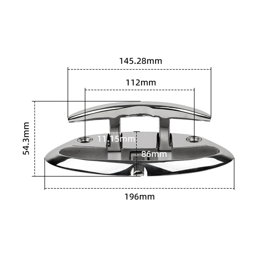 This marine folding cleat is designed to save space on the boat and to provide a reliable point for docking, anchoring and mooring. It is made of heavy duty 316 marine grade stainless steel, so it is sturdy, durable and suitable for long time use in marine environments. The cleat adopts fine grinding mirror polishing, resulting in a bright, smooth surface with good flatness that allows the rope to pass easily.