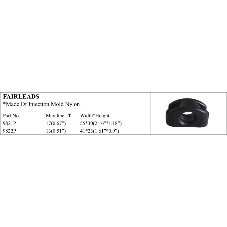 *Made Of Injection Mold Nylon Part No. Max line Φ Width*Height 9821P 17(0.67”) 55*30(2.16”*1.18”) 9822P 13(0.51”) 41*23(1.61”*0.9”)