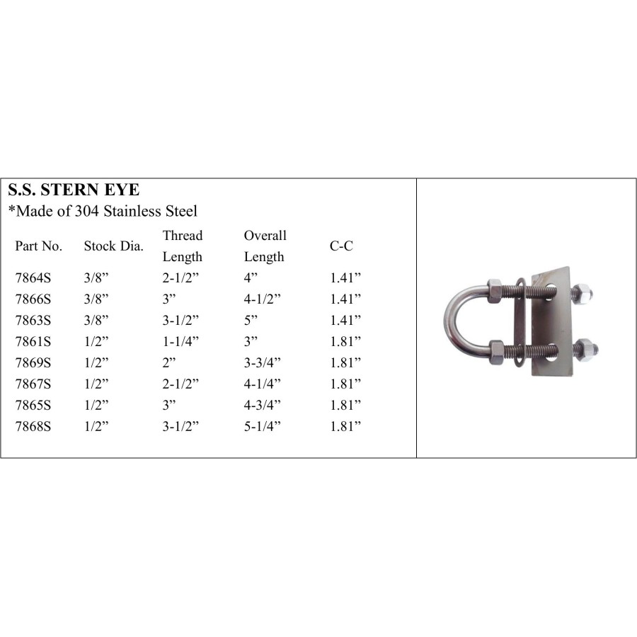 *Made of 304 Stainless Steel Part No. Stock Dia. Thread Length Overall Length C-C 7864S 3/8” 2-1/2” 4” 1.41” 7866S 3/8” 3” 4-1/2” 1.41” 7863S 3/8” 3-1/2” 5” 1.41” 7861S 1/2” 1-1/4” 3” 1.81” 7869S 1/2” 2” 3-3/4” 1.81” 7867S 1/2” 2-1/2” 4-1/4” 1.81” 7865S 1/2” 3” 4-3/4” 1.81” 7868S 1/2” 3-1/2” 5-1/4” 1.81”