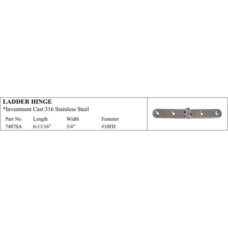 *Investment Cast 316 Stainless Steel Part No Length Width Fastener 7487SA 6-11/16” 3/4” #10FH