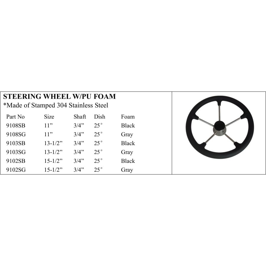 *Made of Stamped 304 Stainless Steel Part No Size Shaft Dish Foam 9108SB 11” 3/4” 25° Black 9108SG 11” 3/4” 25° Gray 9103SB 13-1/2” 3/4” 25° Black 9103SG 13-1/2” 3/4” 25° Gray 9102SB 15-1/2” 3/4” 25° Black 9102SG 15-1/2” 3/4” 25° Gray