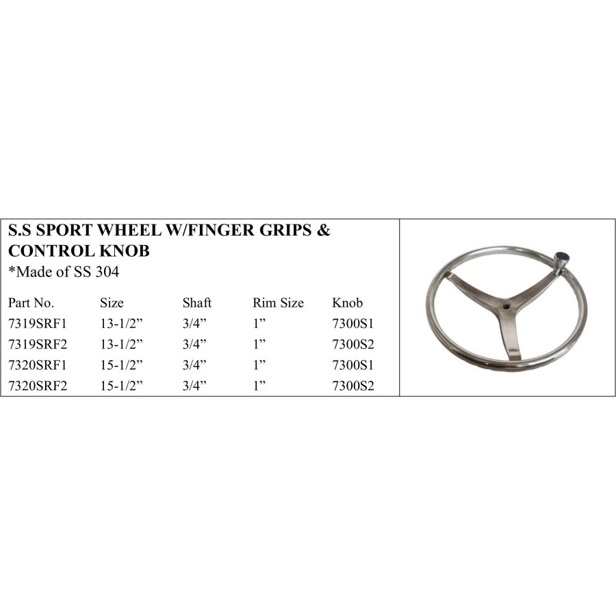 *Made of SS 304 Part No. Size Shaft Rim Size Knob 7319SRF1 13-1/2” 3/4” 1” 7300S1 7319SRF2 13-1/2” 3/4” 1” 7300S2 7320SRF1 15-1/2” 3/4” 1” 7300S1 7320SRF2 15-1/2” 3/4” 1” 7300S2