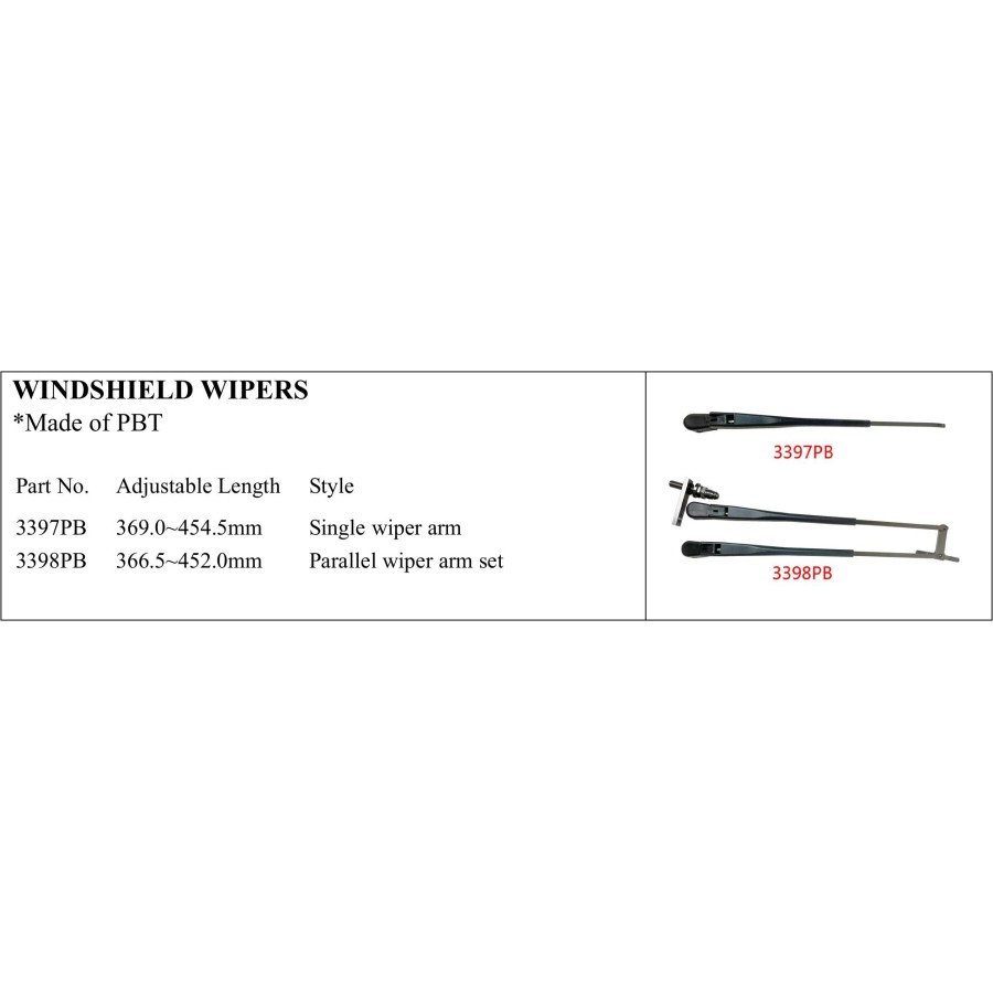 *Made of PBT Part No. Adjustable Length Style 3397PB 369.0~454.5mm Single wiper arm 3398PB 366.5~452.0mm Parallel wiper arm set