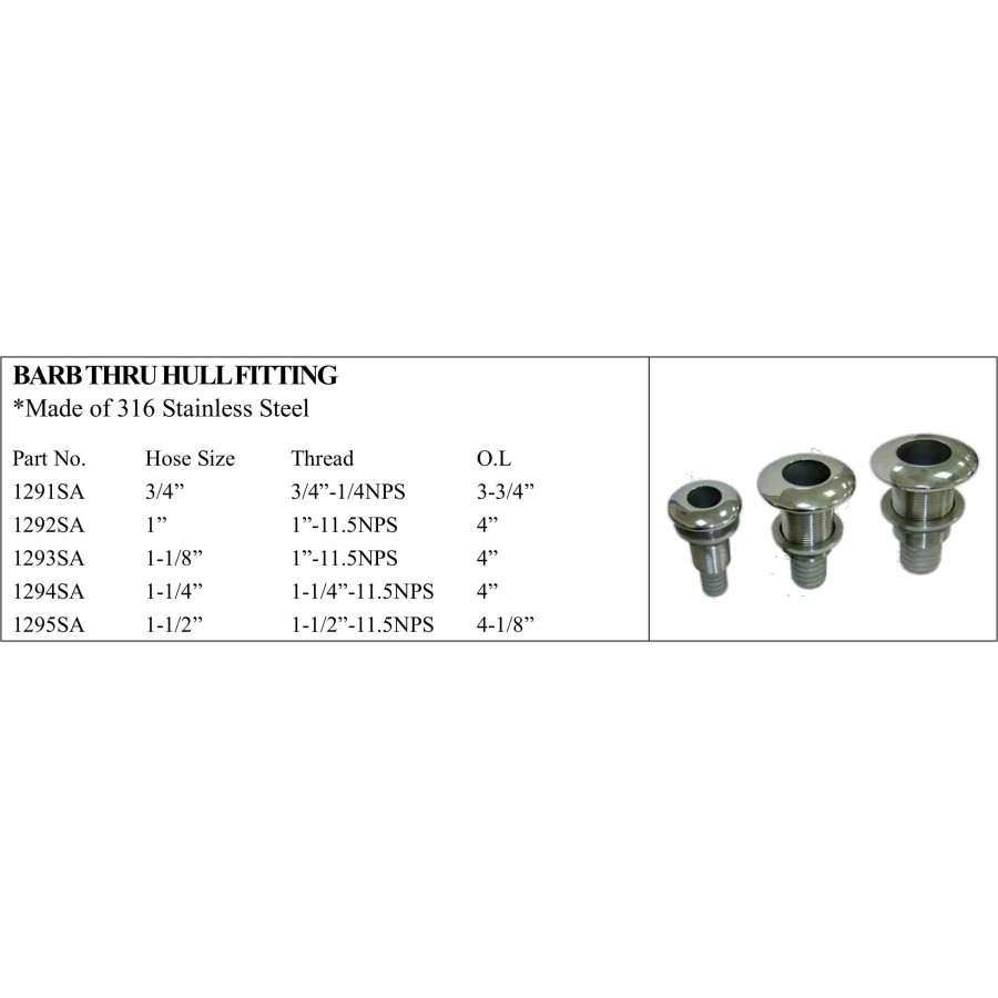 *Made of 316 Stainless Steel Part No. Hose Size Thread O.L 1291SA 3/4” 3/4”-1/4NPS 3-3/4” 1292SA 1” 1”-11.5NPS 4” 1293SA 1-1/8” 1”-11.5NPS 4” 1294SA 1-1/4” 1-1/4”-11.5NPS 4” 1295SA 1-1/2” 1-1/2”-11.5NPS 4-1/8”