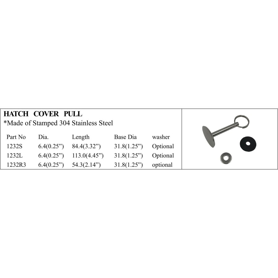 *Made of Stamped 304 Stainless Steel Part No Dia. Length Base Dia washer 1232S 6.4(0.25”) 84.4(3.32”) 31.8(1.25”) Optional 1232L 6.4(0.25”) 113.0(4.45”) 31.8(1.25”) Optional 1232R3 6.4(0.25”) 54.3(2.14”) 31.8(1.25”) optional