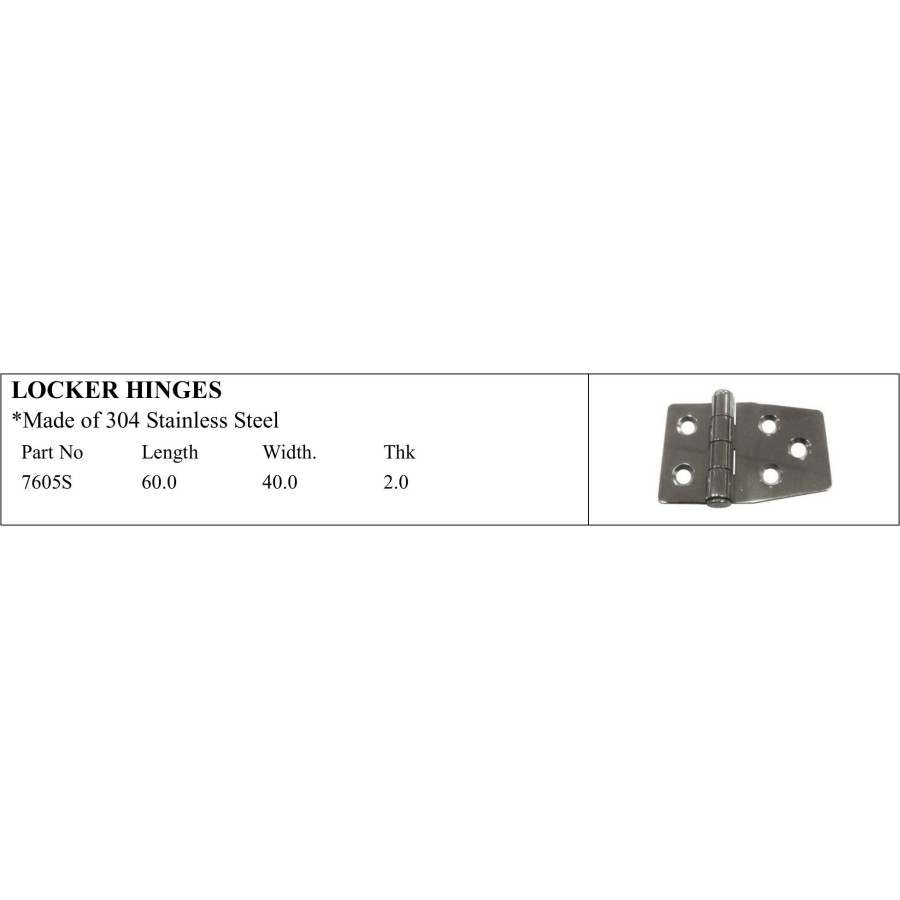 *Made of 304 Stainless Steel Part No Length Width. Thk 7605S 60.0 40.0 2.0