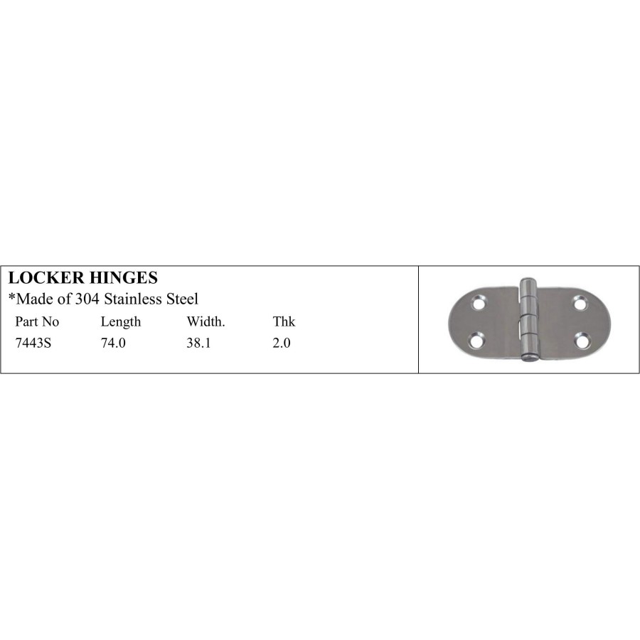 *Made of 304 Stainless Steel Part No Length Width. Thk 7443S 74.0 38.1 2.0