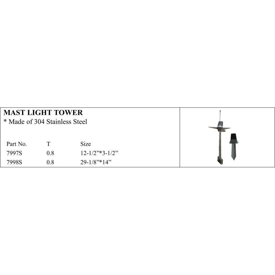 *Made of 304 Stainless Steel Part No. T Size 7997S 0.8 12-1/2”*3-1/2” 7998S 0.8 29-1/8”*14”