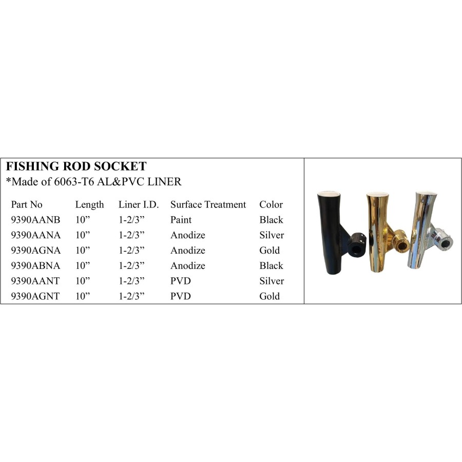 *Made of 6063-T6 AL&PVC LINER Part No Length Liner I.D. Surface Treatment Color 9390AANB 10” 1-2/3” Paint Black 9390AANA 10” 1-2/3” Anodize Silver 9390AGNA 10” 1-2/3” Anodize Gold 9390ABNA 10” 1-2/3” Anodize Black 9390AANT 10” 1-2/3” PVD Silver 9390AGNT 10” 1-2/3” PVD Gold